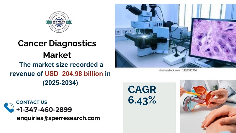According to SPER market research, ‘Global Cancer Diagnostics Market Size- By Product, By Type, By Application, By End-User, By Test Type, By Coverage- Regional Outlook, Competitive Strategies and Segment Forecast to 2034’ state that the Global Cancer Diagnostics Market is predicted to reach 204.98 billion by 2034 with a CAGR of 6.43%.