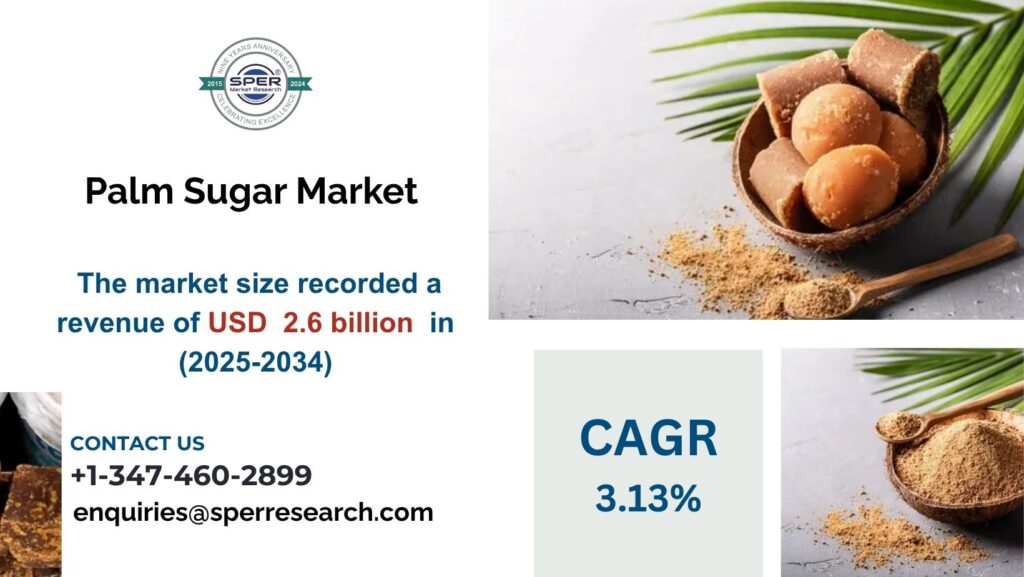 According to SPER market research, ‘Global Palm Sugar Market Size- By Type, By Form, By End User- Regional Outlook, Competitive Strategies and Segment Forecast to 2034’ states that the Global Palm Sugar Market is predicted to reach 2.6 billion by 2034 with a CAGR of 3.13%.