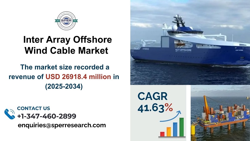 According to SPER market research, ‘Global Inter Array Offshore Wind Cable Market Size- y Voltage Rating, By Conductor Material – Regional Outlook, Competitive Strategies and Segment Forecast to 2033’ state that the Global Inter Array Offshore Wind Cable Market is predicted to reach 27023.12 Million by 2034 with a CAGR 41.68%.