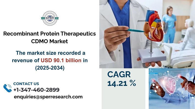 According to SPER market research, ‘Global Recombinant Protein Therapeutics CDMO Market Size- By Type, By Source, By Indication – Regional Outlook, Competitive Strategies and Segment Forecast to 2034’ state that the Global Recombinant Protein Therapeutics CDMO Market is predicted to reach 90.1 billion by 2034 with a CAGR of 14.21%.
