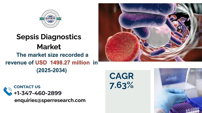 According to SPER Market Research, ‘Global Sepsis Diagnostics Market Size- By Product, By Technology, By Method Type, By Pathogen Type, By End-User- Regional Outlook, Competitive Strategies and Segment Forecast to 2034’ the Global Sepsis Diagnostics Market is estimated to reach USD 1498.27 million by 2034 with a CAGR of 7.63%.