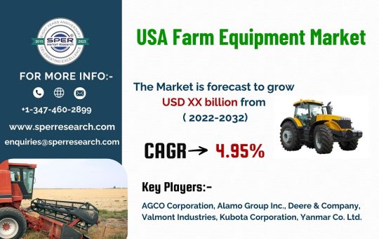According to SPER market research, ‘USA Agriculture Equipment Market Size- By Equipment Type, By Application- Regional Outlook, Competitive Strategies and Segment Forecast to 2032’ state that the USA Agriculture Equipment Market is predicted to reach USD XX billion by 2032 with a CAGR of 4.95%.